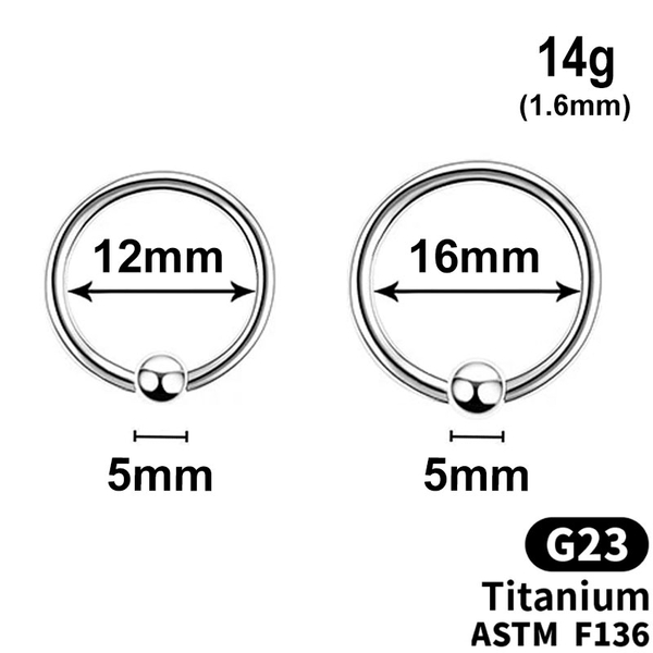 Captive Bead Ring, with 5mm ball, 14g, G23 TITANIUM ASTM F136